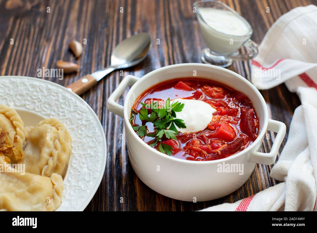 The skins slip right off after boiling and its easy to chop or slice them, plus it increases the nutritional value of the soup! It's as authentic as it gets. It is typically made with using large amount of beets (normally sour beets). So healthy ukrainian borscht… everyone knows what it is and many people around the world have fallen in love with this iconic beet soup. Sok hasonló jelenet közül választhat. It is a hefty task to deliver the perfect recipe, which. Borsch, ukrainian, food traditional national ukrainian beet soup borscht. Restaurant of national ukrainian cuisine in yaremche. Ruby red borscht soup is one of my favorite things to make going into the fall season. Then served with a dollop of sour cream and rye bread. Dumplings with sour cream in ceramic bowl. Authentic ukrainian borscht | how to make ukrainian red beet soup. Bowl of red beet root soup borsch with white cream.