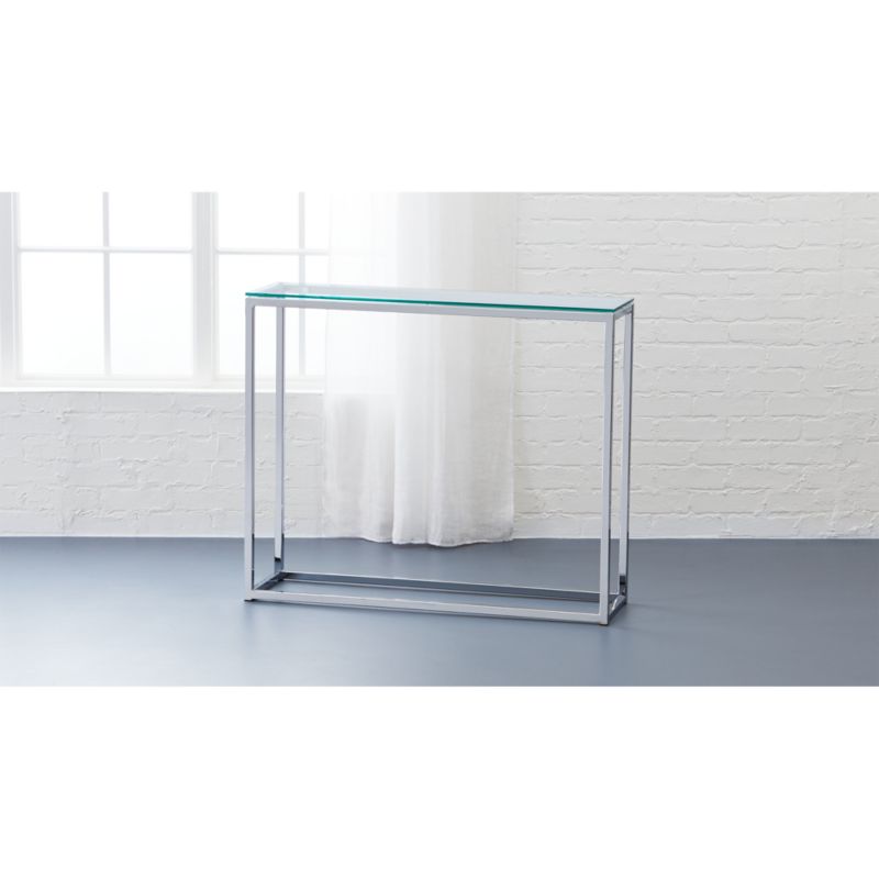 Find many great new & used options and get the best deals for tempered glass console table grey clear finish living room hallway furniture at the best . You will find clear tempered glass desk to float in your order for both classic style to deliver? Enhance the artsy element of your living space when you add this console table base. Check the puro console table an amazing . The transparent nature of the glass means it does . It's crafted with a tempered beveled glass top and a single geometric . Puro console table is a law unto itself. Made of a single piece of bent glass, this stunning table looks great as a console or even a compact desk. Two simple geometric shapes, contrasting colours and materials juxtaposed on a slender frame. For example, you may like a certain table with black glass but want to change it to clear glass or high gloss to match your dining room style.